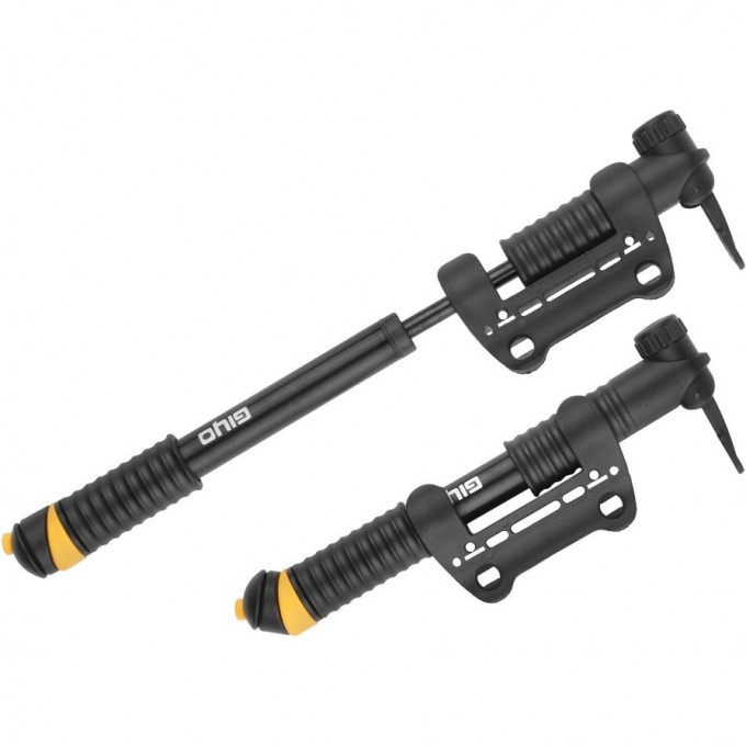 Насос GP-02 Giyo ручной, алюминиевый корпус, двухходовой, переходник автовентиль/Presta, с креплением к раме велосипеда, черный с жёлтыми вставками