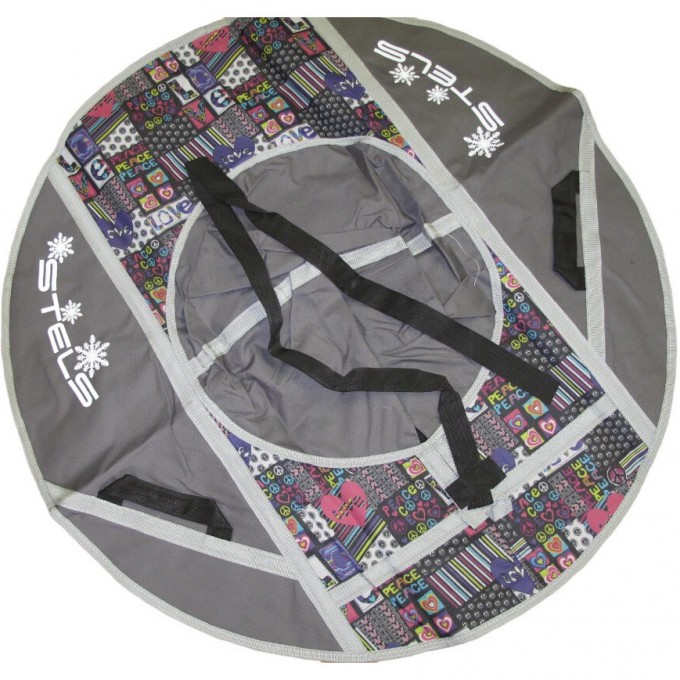 Санки надувные D110см арт. сн032, верхний слой - ткань с рисунком полотняного переплетения 600D с водонепрницаемой пропиткой на внутренней стороне, нижний слой - гладкая тентовая ткань, наиболее нагруженные швы усилены капроновой лентой, места крепления ручек дополнительно прошиты лавсановой нитью, без камеры.