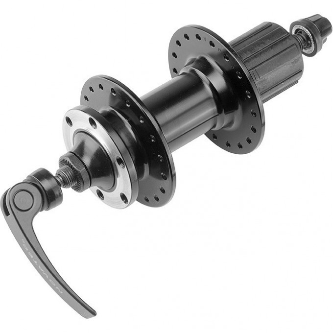 Втулка задняя D472SBT-SC Joytech, на 36 спиц, под диск на 6 болтов, с эксцентриковым зажимом, пром. подшипниками, под кассету на 8-10 скоростей, резиновое уплотнение, O.L.D. 135 мм, ось 10х145 мм, алюминиевый корпус, чёрная
